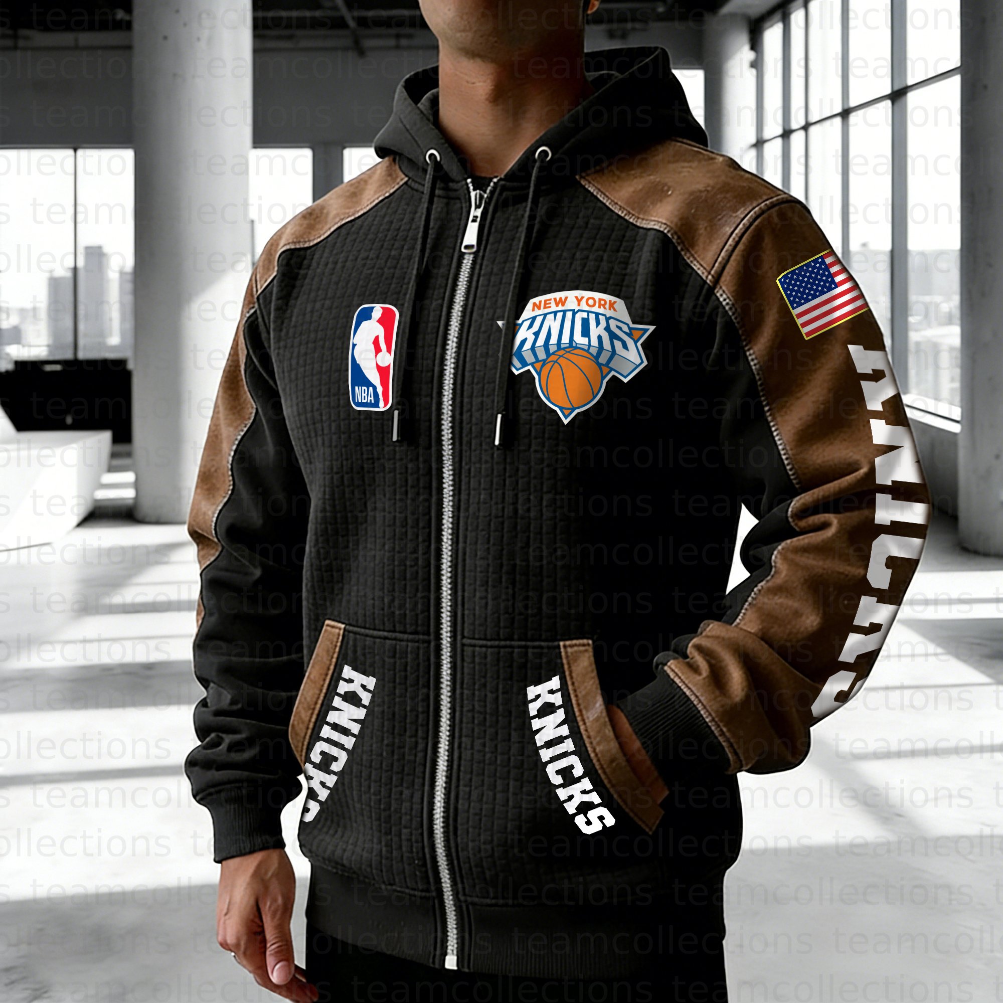 New York Knicks Contrasting Shoulder Panels Hooded Zip-Up Jacket