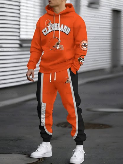 (Fleece-Lined Hoodie) Cleveland Browns Hoodie & Pants 2 Pieces Set
