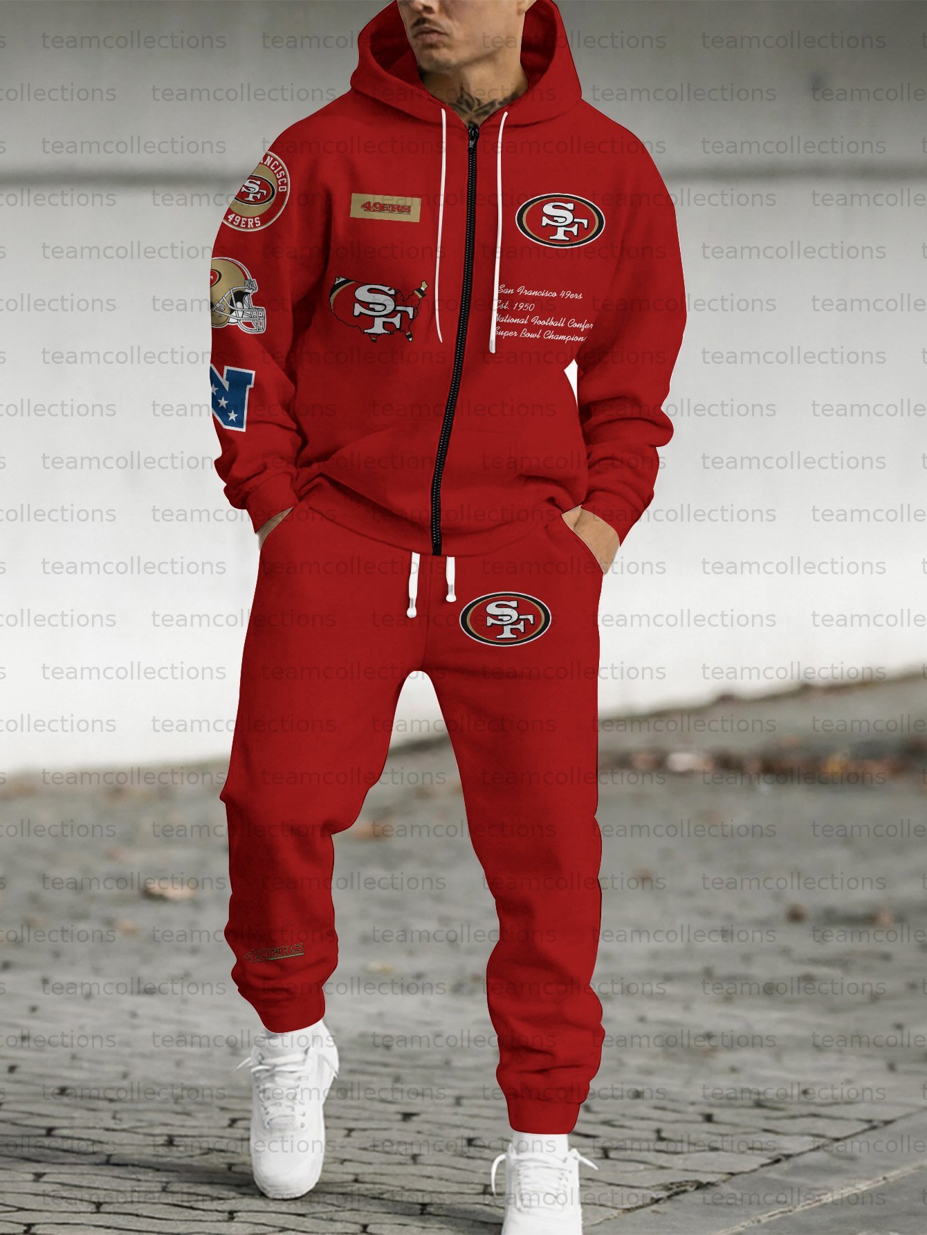 (Fleece-Lined Zip-up Hoodie) San Francisco 49ers Zip-up Hoodie & Pants 2 Pieces Set