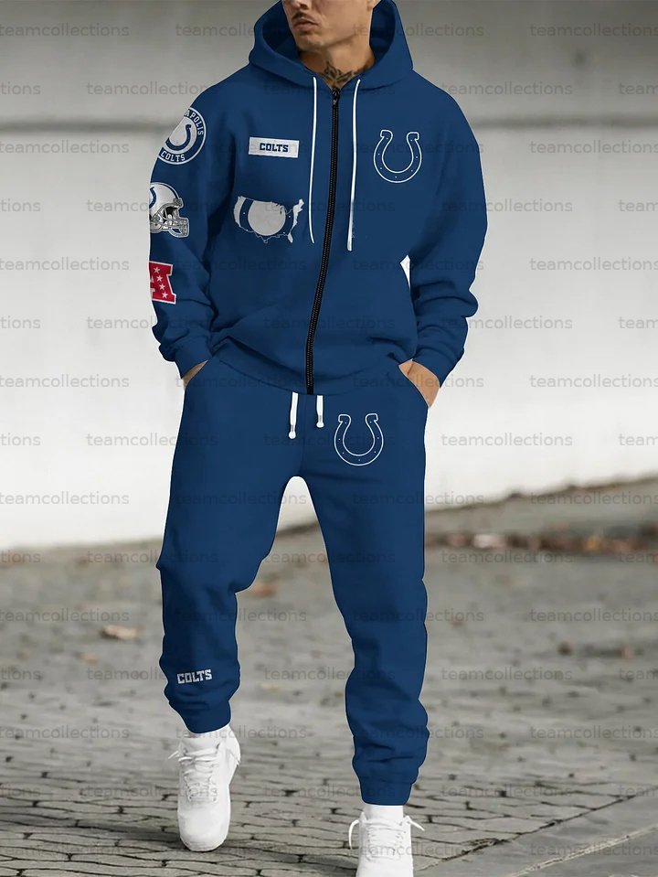 (Fleece-Lined Zip-up Hoodie) Indianapolis Colts Zip-up Hoodie & Pants 2 Pieces Set