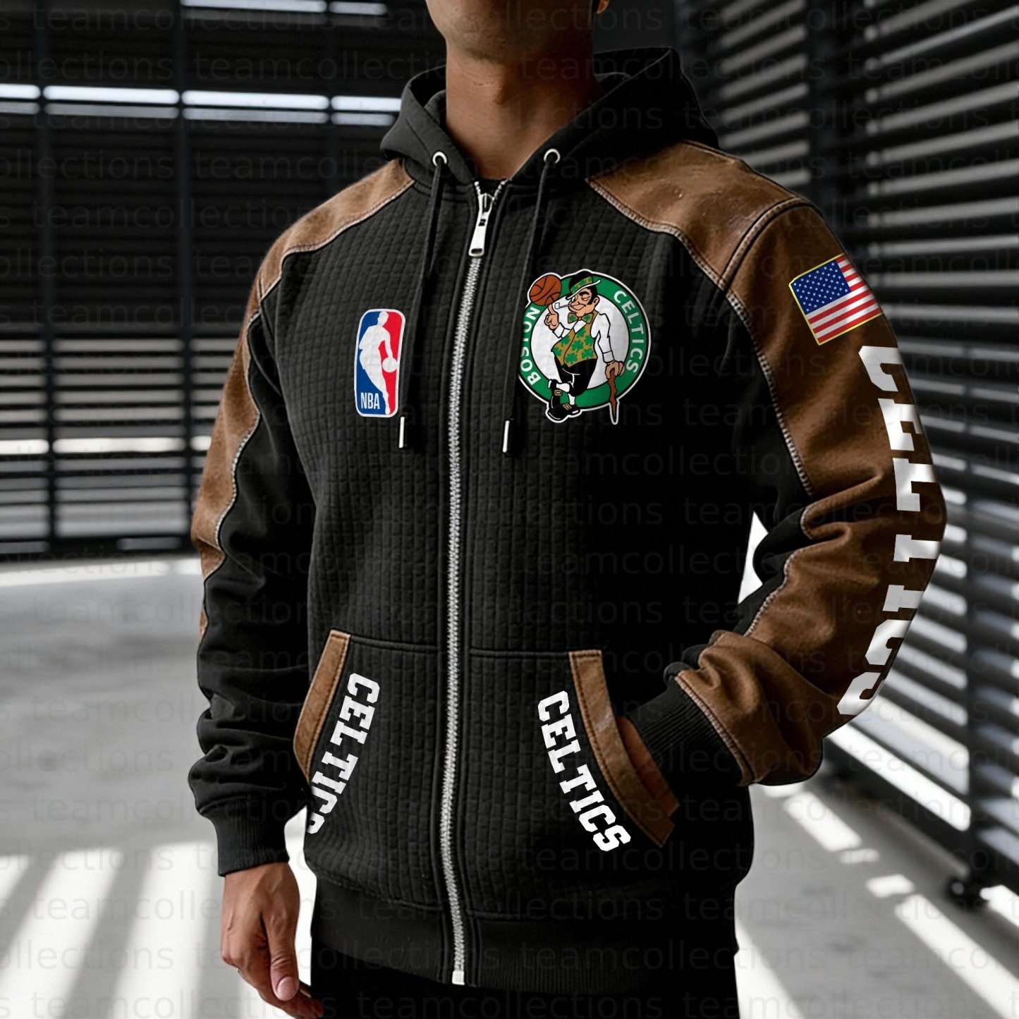 Boston Celtics Contrasting Shoulder Panels Hooded Zip-Up Jacket