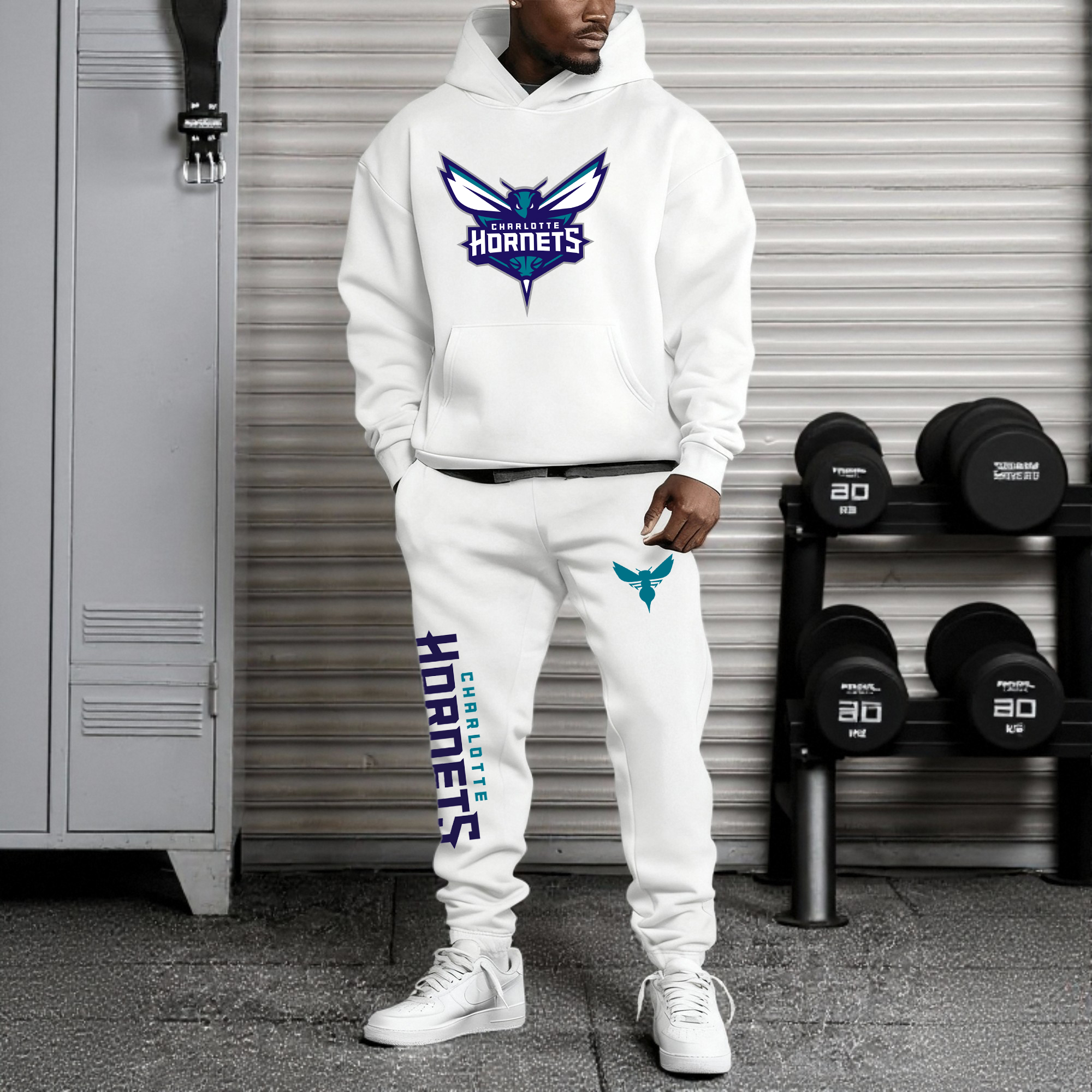 (Fleece-Lined Hoodie) ”Charlotte Hornets“3D Printed Pullover Hoodie And Sweatpant 2pcs Tracksuits