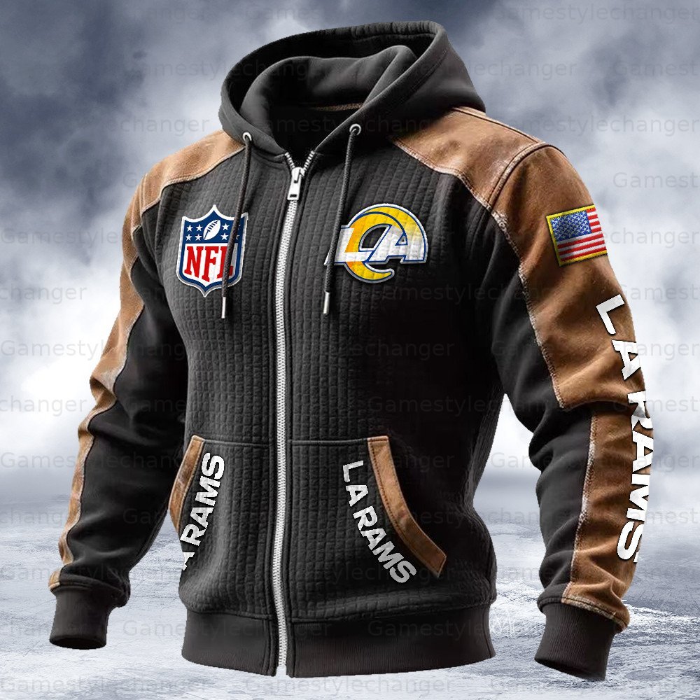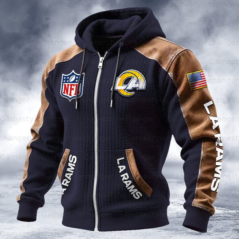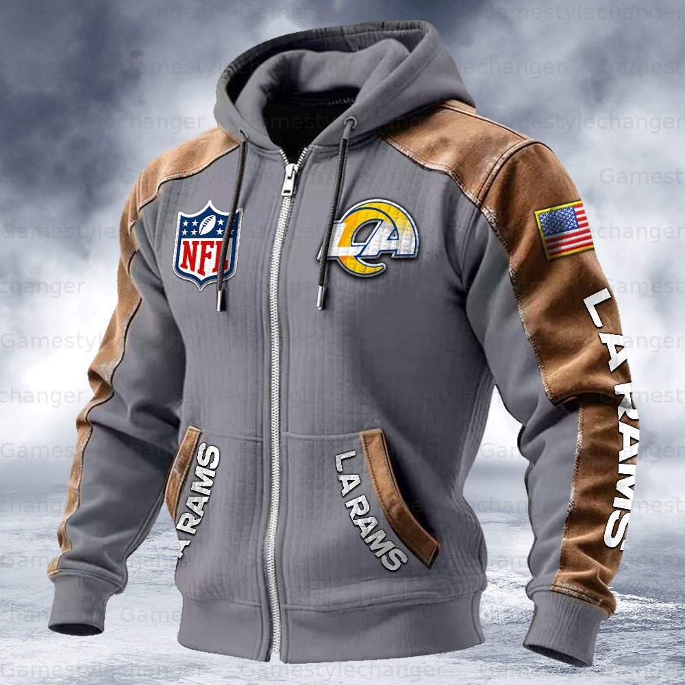 Los Angeles Rams Contrasting Shoulder Panels Hooded Zip-Up Jacket