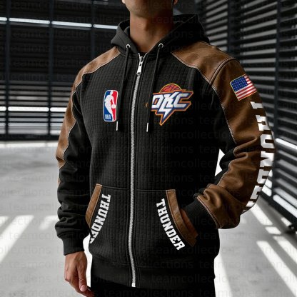 Oklahoma City Thunder Contrasting Shoulder Panels Hooded Zip-Up Jacket