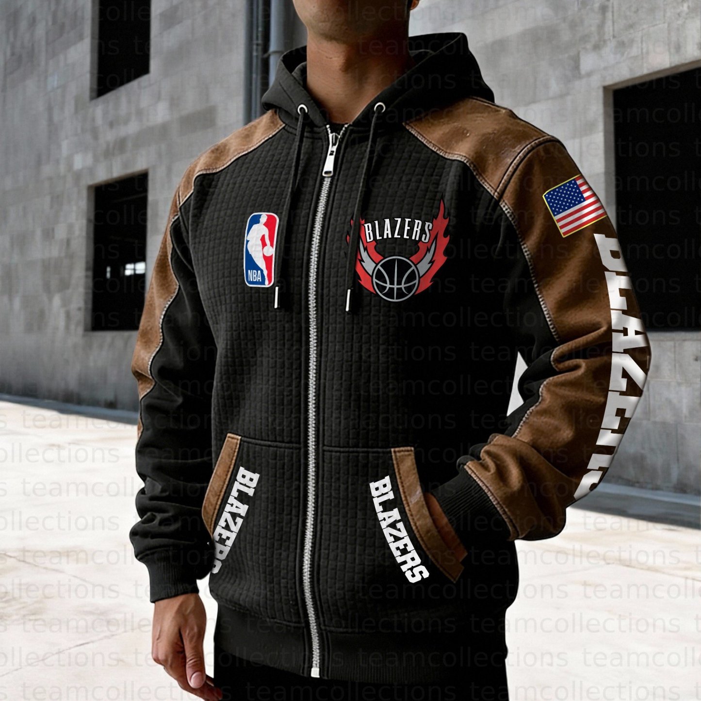 Portland Trail Blazers Contrasting Shoulder Panels Hooded Zip-Up Jacket