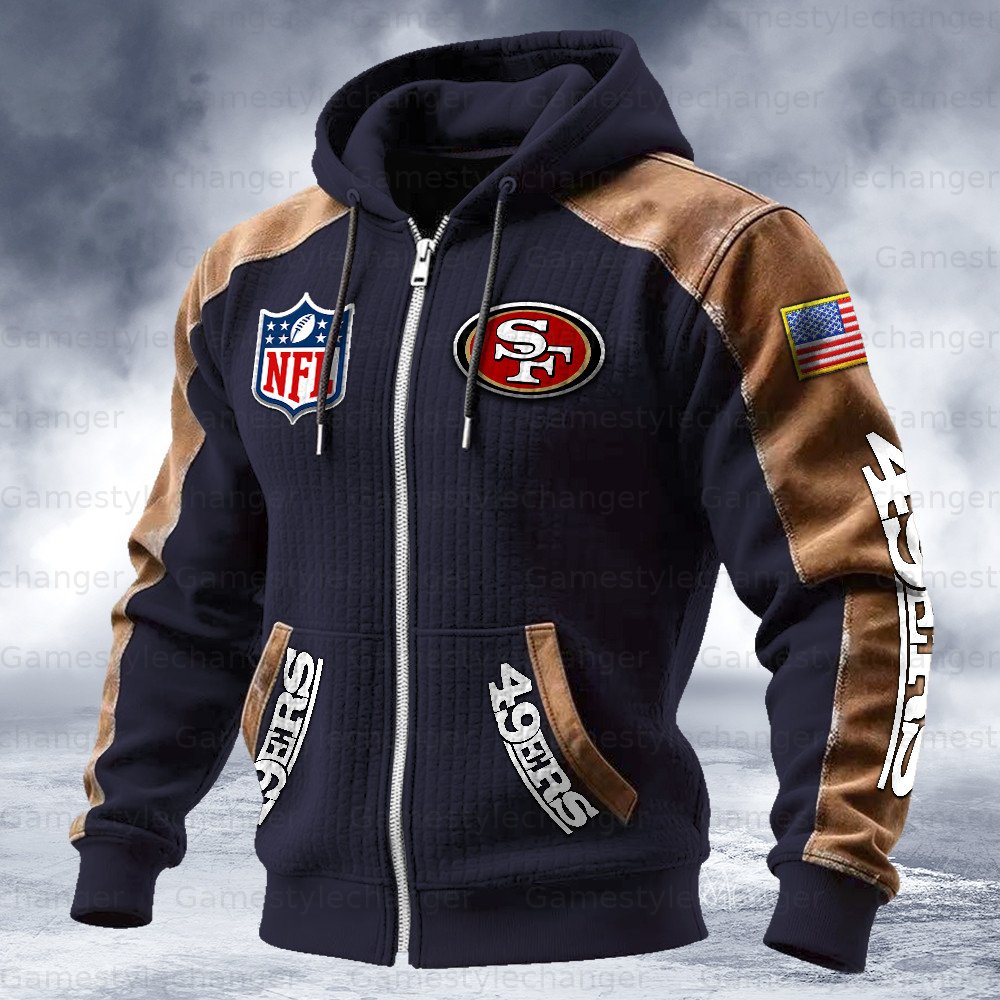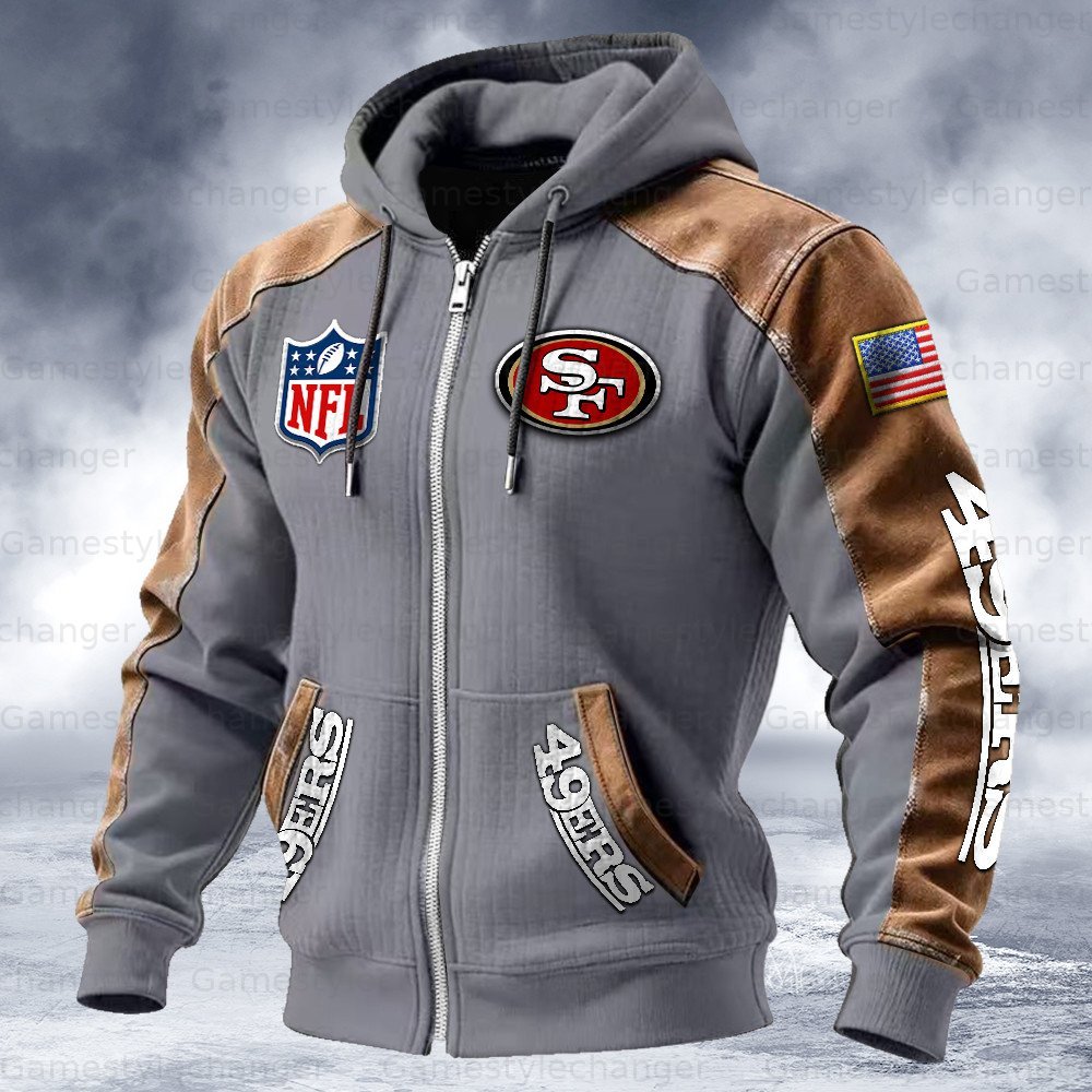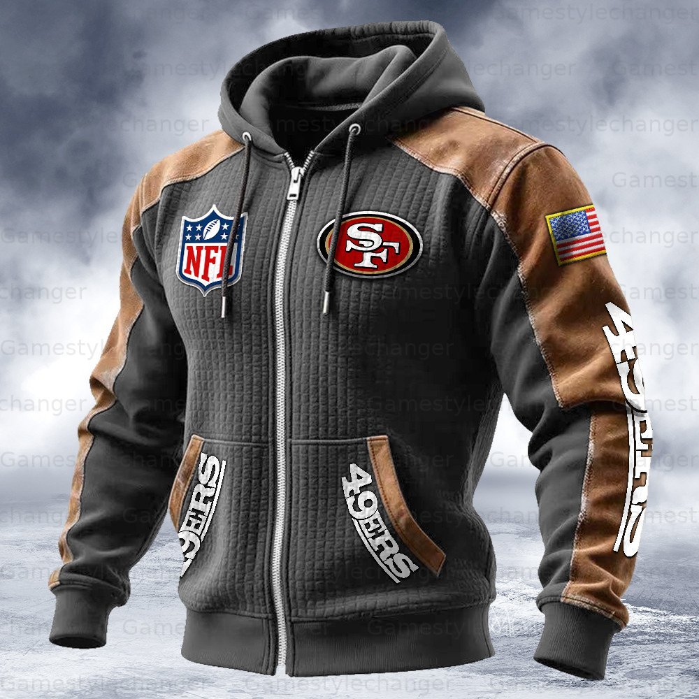 San Francisco 49ers Contrasting Shoulder Panels Hooded Zip-Up Jacket
