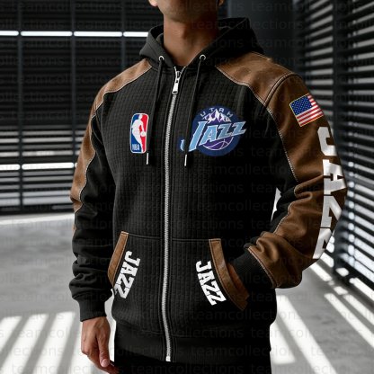 Utah Jazz Contrasting Shoulder Panels Hooded Zip-Up Jacket